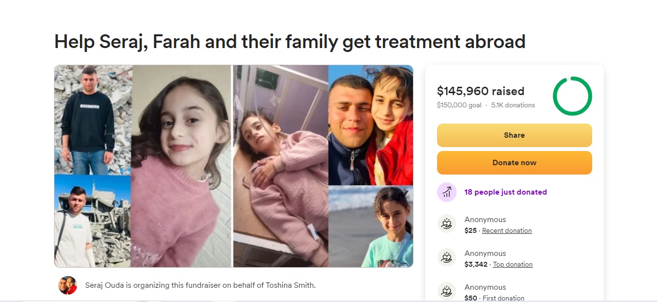 On October 22, 2024, Toshina posted the following update to the campaign, Help Seraj, Farah and their family get treatment abroad: